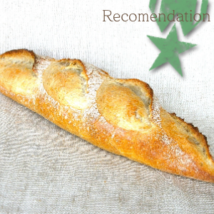 レジャンデール(小麦の持つビタミン・食物繊維・ミネラル等の栄養成分を最大限に引き出した、 風味の良い小麦粉。味・香りを最大限に生かしいる)を使用。一晩低温で発酵させて小麦のうまみを最大限に引き出しています。香りがよく、香ばしいクラスト(外側に付いた焼き色の部分のこと。固くなっている部分)が絶品。